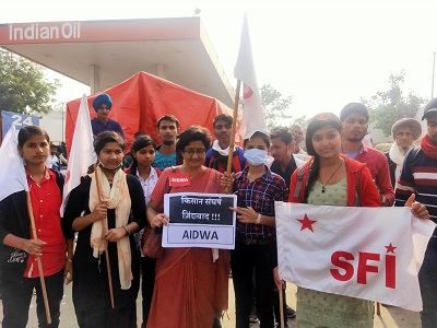 AIDWA delegation consisting of general secretary Mariam Dhawale, joint secretary Asha Sharma, Dr Archana Prasad, Kiran and Sarbani Sarkar joined the farmers blockade at the Tikri border, distributed leaflets and expressed solidarity demanding the immediate withdrawal of the 3 agri bills and the electricity bill. AIDWA has supported the Bharat Bandh on Dec 8 and will actively work for its success